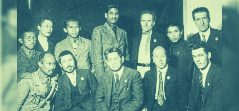 The photograph shows Grigory Zinoviev, prominent Bolshevik and leader of the Comintern, seated at the centre. To his right is the Japanese anarchist and socialist, Sen Katayama; next to him is Nguyen Ai Quoc who would become famous as Ho Chi Minh; behind him, third from the left is Tan Malaka, exiled from Sumatra in 1921 to the Netherlands; and beside him – of obvious interest to all students of modern Indian history – stands M.N. Roy who was from Bengal but had arrived in Moscow having travelled through Southeast Asia, Japan, China and the US.