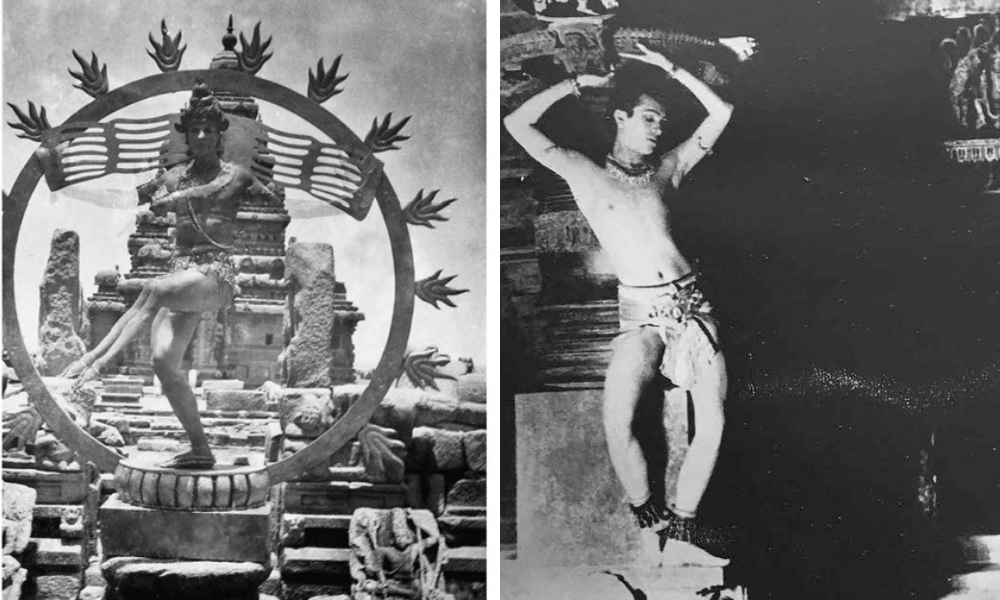 While Sinha's interpretations and readings of the photographs are often speculative, they do bring up questions of homo-erotic desires and the fascination, particularly in America, of orientalist fantasy, in a culture which did not have a colonial history in Asia, unlike in Britain or Europe. Looking back at Ram Gopal’s other dance photos, he uncovers the interesting history of the dancer photographed in temple settings in India, but reminds us that the first dancer to do that was the American Ted Shawn as Nataraja at Mahabalipuram in 1926.