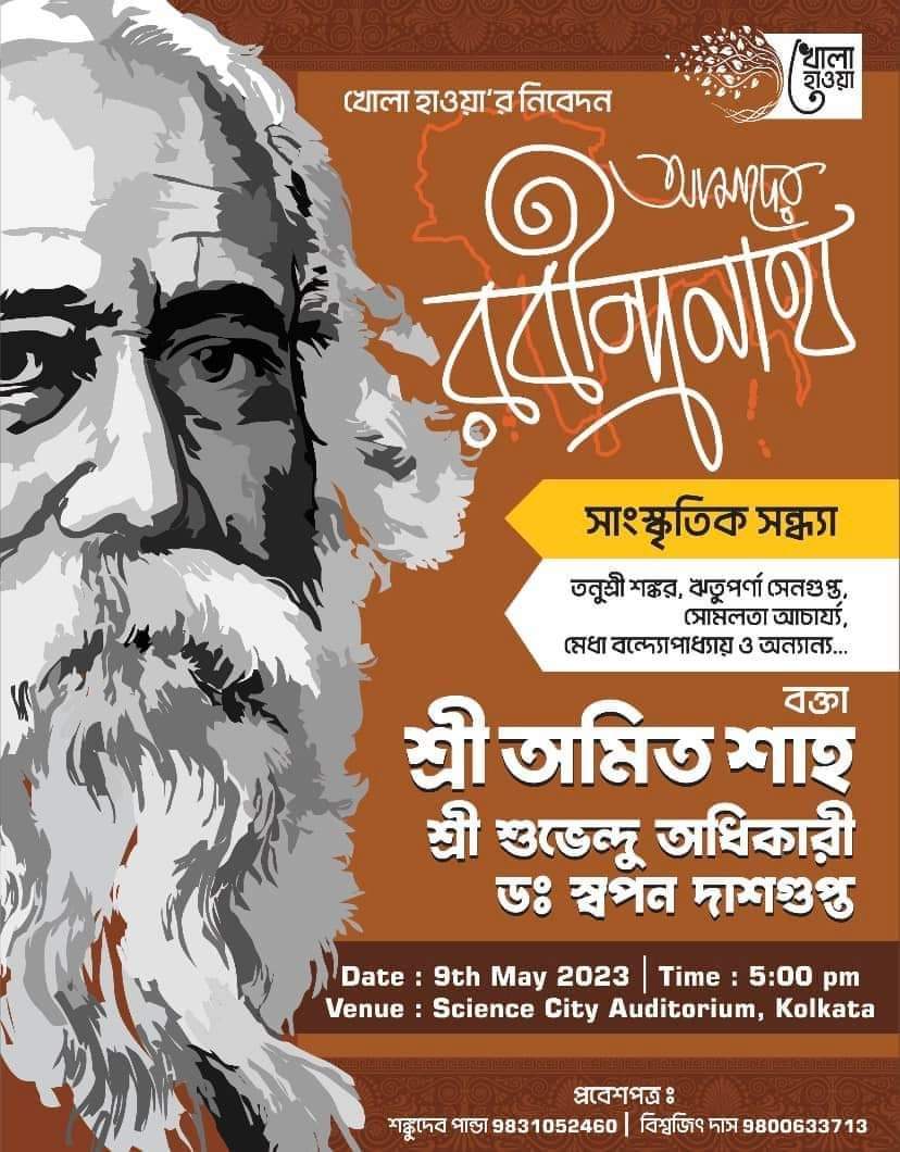 The poster advertising the 'Khola Hawa' event at which Amit Shah and others will speak on Tagore on May 9.