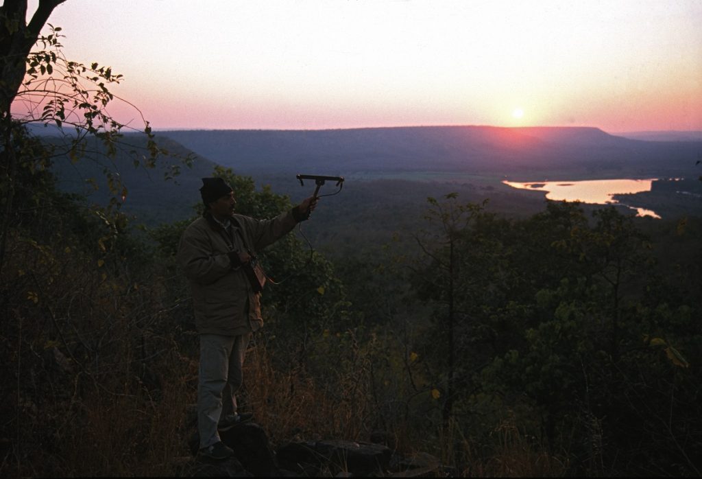Raghu Chundawat tracking tigers in the reserve. Credit: Joanna Van Gruisen