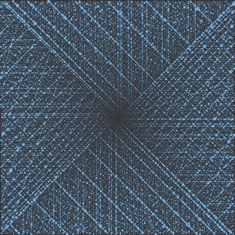 An Ulam spiral of the number of divisors of the first 100,000 natural numbers. Numbers with exactly two divisors – 1 and the number itself – are called prime numbers. Credit: Cortexd/Wikimedia Commons, CC BY-SA 3.0