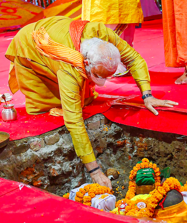 Prime Minister Narendra Modi performs Bhoomi Pujan at ‘Shri Ram Janmabhoomi Mandir’, in Ayodhya, Wednesday, Aug. 5, 2020.
