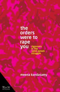 Meena Kandasamy’s The Orders Were to Rape You: Tamil Tigresses in the Tamil Eelam Struggle contains three narratives; that of the author, the story of ‘a Tamil Tiger’s wife’, and that of a LTTE woman combatant. It concludes with ‘poetry by female guerrillas, resistance fighters, and militants’.
