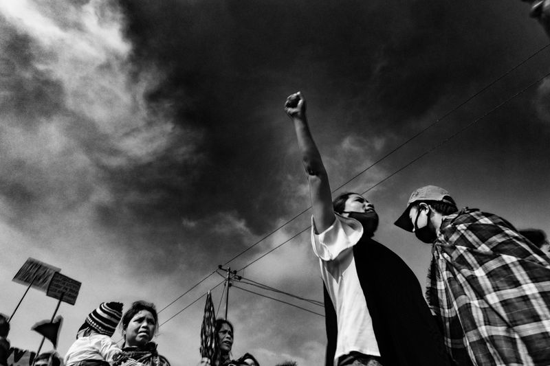 The book begins with a series of images of Kong Spillity’s funeral in 2020; Death House. Waiting, sealing the coffin, flowers, cross, funeral procession, preparing a slaughtered pig. This is followed by a series of images from the Domiasiat village, taken in 2006. One is the iconic image of Kong Spillity standing outside her house. This, I believe, is when she explained to Tarun, “Could the money buy this river? This land? This freedom?” – words that have become the rallying cry for many young people who have come in support of the cause to keep the uranium in the ground, come what may. For the young, protests involve more direct actions like rallies and road blockades.