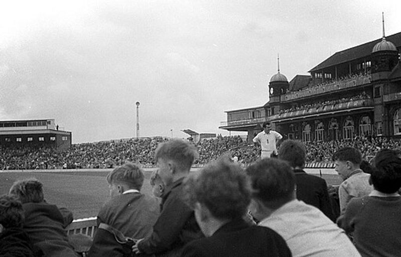 Alan Davidson and Graham Mackenzie were at the crease when the former went for off spinner David Allen who was bowling into the "rough’’ created by bowlers’ boot marks just outside the left hander’s off stump. This devastating assault on Allen was one of the pivotal moments of the match — one of his sixes went over long off, over the terraces to hit the brick wall by the railway yard. Davidson and Mackenzie put on 98 in 102 minutes and when Mackenzie was bowled by Jack Flavell, England was left to get 256 to win in 230 minutes.
