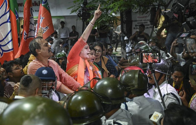 Delhi BJP workers during a protest rally against the alleged vandalism of Rabindranath Tagore's ancestral home in Bangladesh, in New Delhi, Monday, June 16, 2025. Photo: PTI.