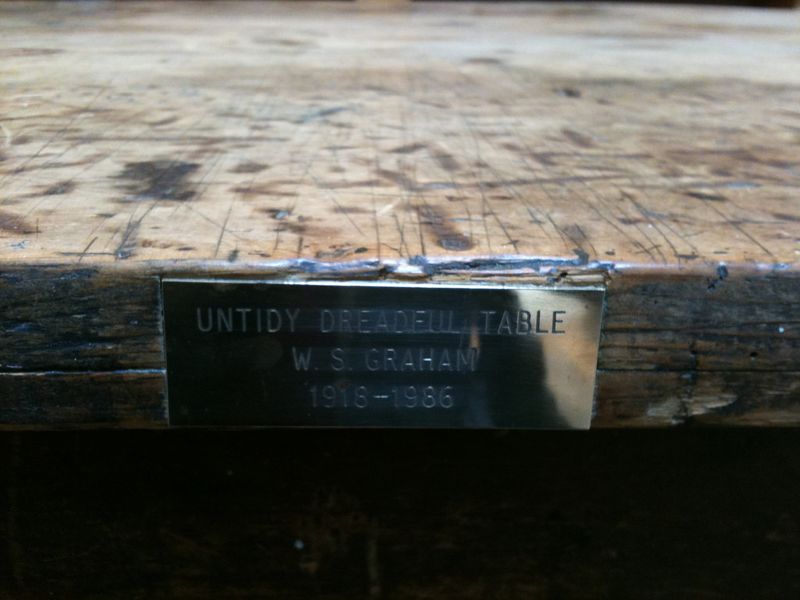 WS Graham’s ‘Untidy Dreadful Table’ as recreated at Constructing Spaces, National Poetry Library. Original desk loaned by the Scottish Poetry Library. Credit: David Nowell Smith, Author provided