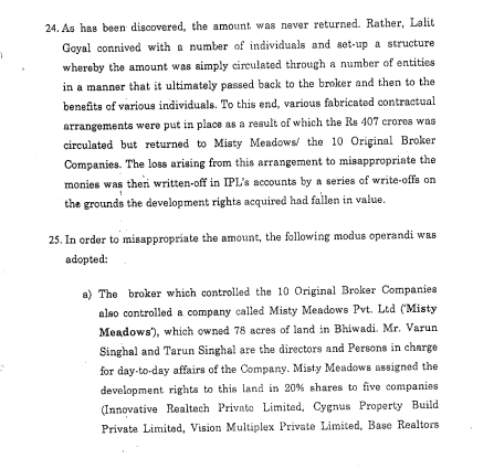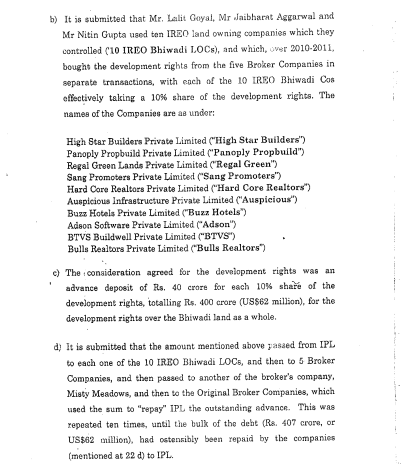 The former official had submitted that “two funds – namely IREO Fund-1 and IREO Fund-II – were incorporated in Mauritius under the applicable laws by respondent No. 21 Lalit Goyal and his Associates.” He said investments were invited on the grounds that the money raised would be “properly invested” and “utilised to buy land in Gurgaon, Delhi and Punjab where group housing projects would be launched”.