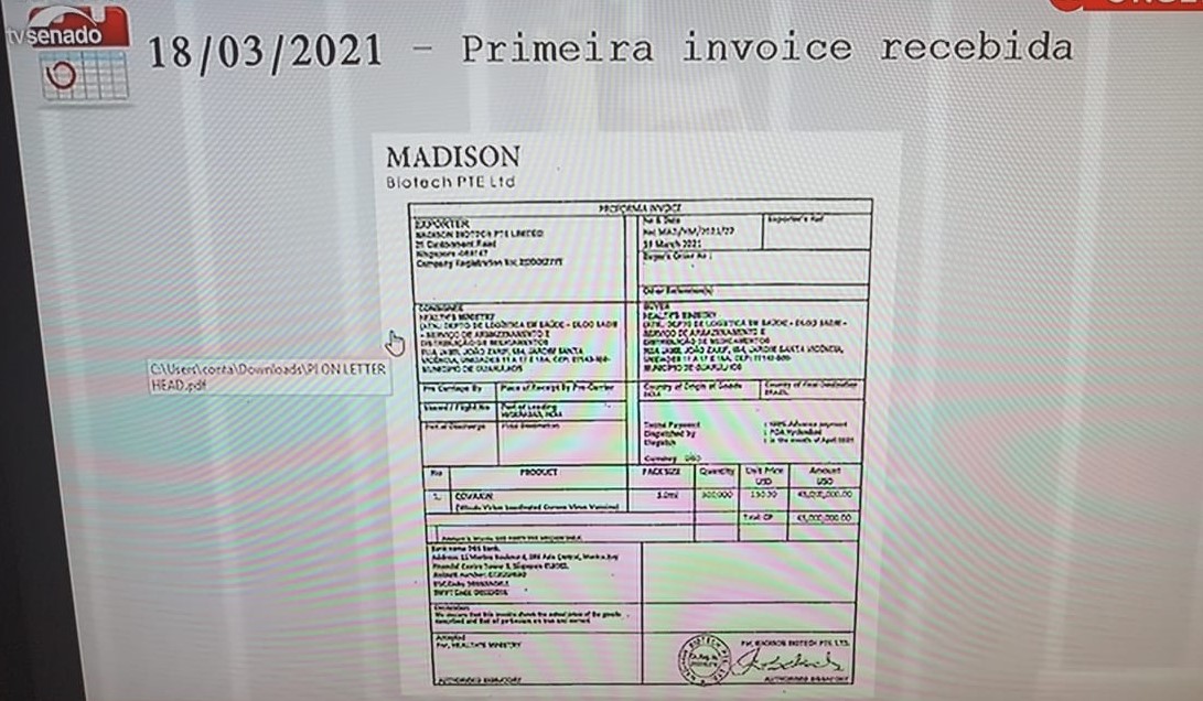 In the past week, the senators leading the probe have appeared confident that Madison Biotech’s invoice is the piece of evidence that will lead to a trail of tax evasion, money-laundering and bribery in the deal between Brazilian government and the Indian firm, represented here by a local company, Precisa Medicamentos.