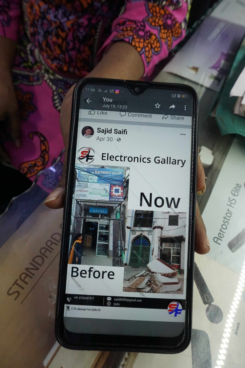 Sajid Saifi’s electronics shop shares a wall with the mosque. “We had an LED display board with the name of the shop ‘Electronics Gallery’. That was destroyed by the bulldozer. As were the shop’s safety reinforcements,” Sajid says.