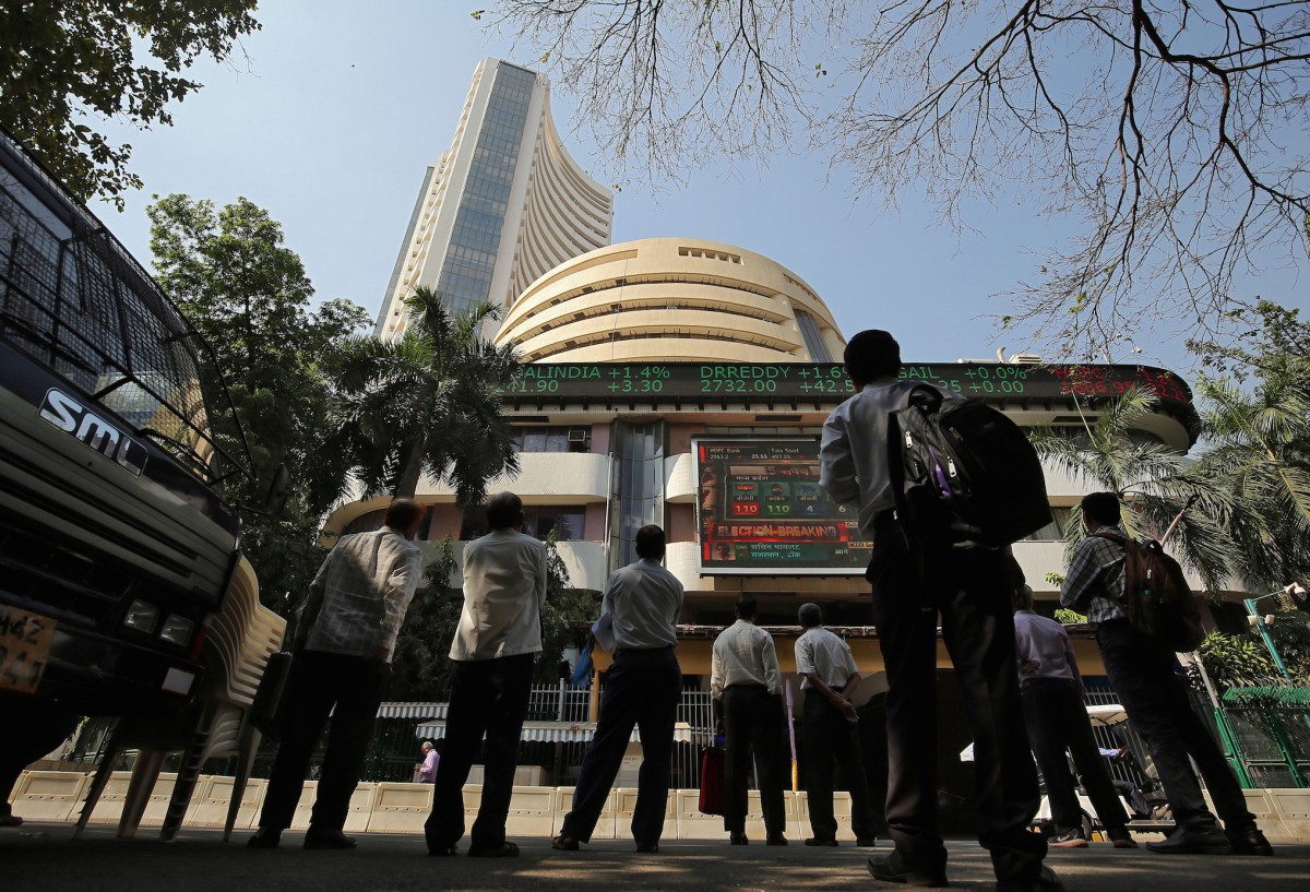 File image of people looking at a screen displaying the Sensex results on the facade of the Bombay Stock Exchange (BSE) building in Mumbai. Photo: Francis Mascarenhas via Reuters