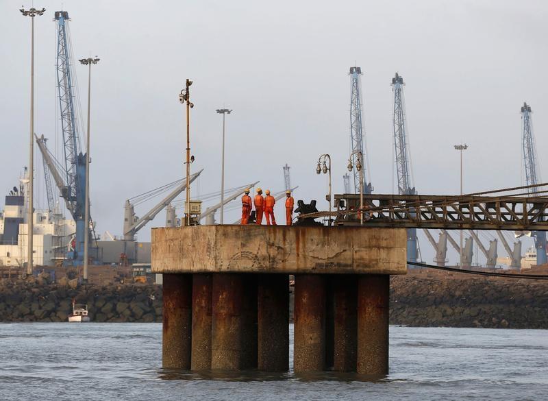 Workers wait for a cargo ship to beach at Mundra Port in Gujarat April 2, 2014. Credit: Reuters/Amit Dave