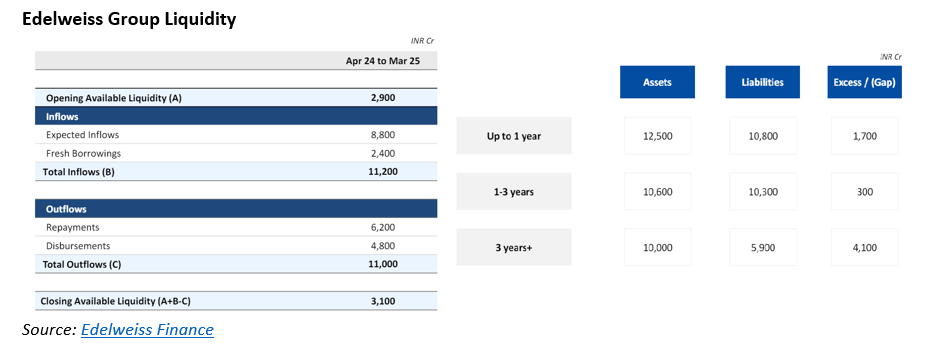 As per the 4QFY24 results disclosure (prior to the RBI action), the group reported a comfortable asset-liability position in all three buckets: less than one year, one to three years, and more than three years.