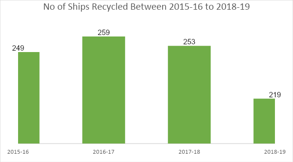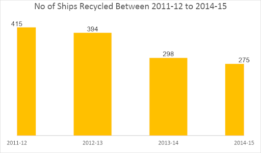 Trends in Number of Recycled Ships in Alang From 2011-15 & 2015-2019