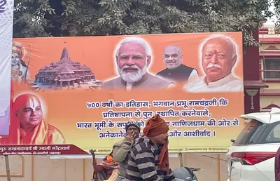 While construction of the Ram temple complex – built after the demolition of the Babri Masjid – is yet to be finished and will reportedly go on until 2025, Prime Minister Narendra Modi’s presence at the consecration ceremony has been advertised in almost every corner, across posters, billboards and advertisements in town.