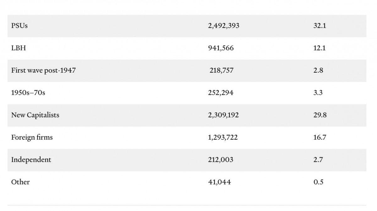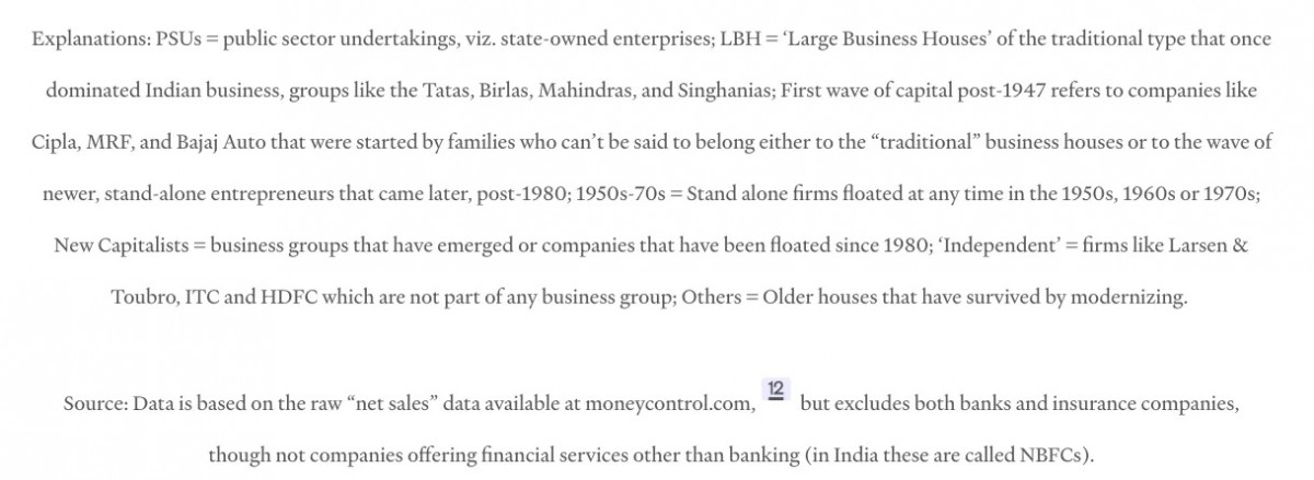 Judged by sales Banaji sees three leading types of corporate capital in India today (whether publicly listed or privately held).