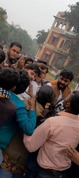 Priyanshu said, “The discussion was proceeding peacefully. Suddenly, 30-40 unruly elements arrived. At the same time, a car without a licence plate entered the campus through the university’s main gate, bearing the name ‘Bajrang Dal.’” She alleged that the students assembled for the discussion were then subjected to casteist insults and physically assaulted.
