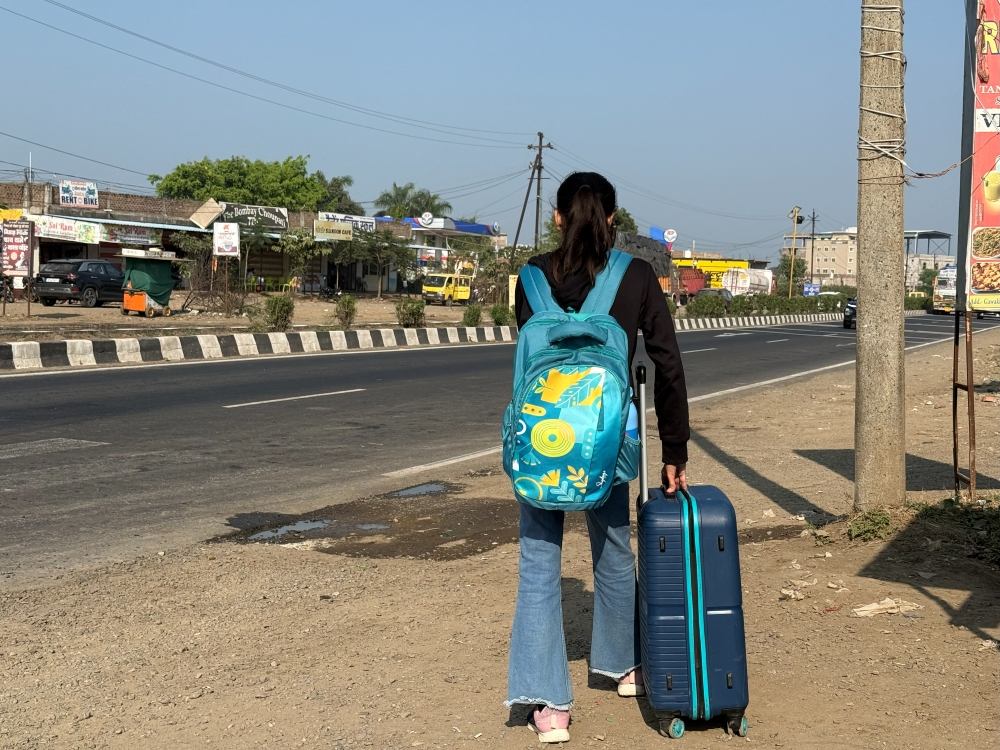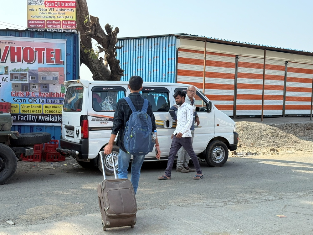 A VIT Bhopal student prepares to leave campus. Photo: Pallav Jain.