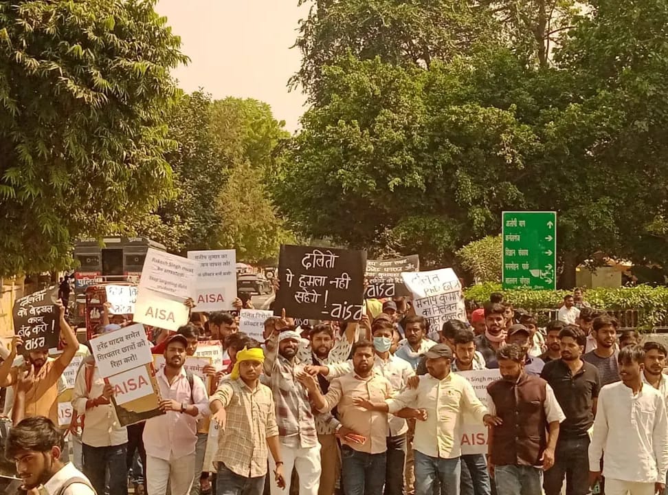 Lucknow University student and National Students’ Union of India (NSUI) student representative Vishal Singh said several students from AISA, NSUI, and other unions gathered on campus on October 18 to condemn the “disgusting assault” by Rakesh Singh.