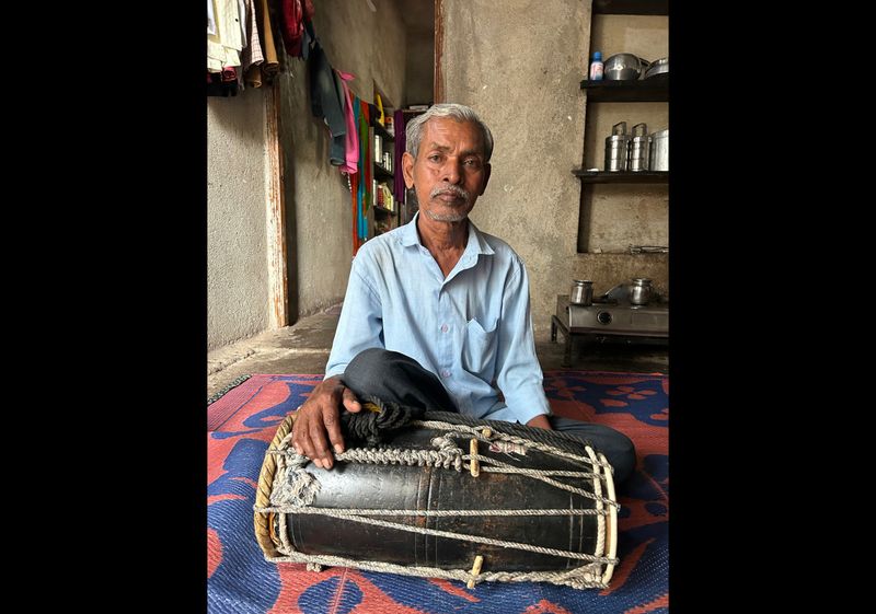 Today, age has slowed him. His teeth are gone, and his eyesight is weak. He cannot eat stale bread in the morning. But the fire in his voice remains. He still carries the same dholki his mother bought in 1975, saved for by collecting four‑anna and eight‑anna coins in a flour tin. He still walks into vastis and begins with a soft and steady “Jai Bhim.” He still believes a song can change the life of a Dalit.
