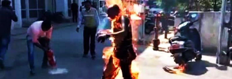 Bhanubhai Vankar as he immolated himself. Credit: Special arrangement
