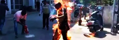 Bhanubhai Vankar as he immolated himself. Credit: Special arrangement