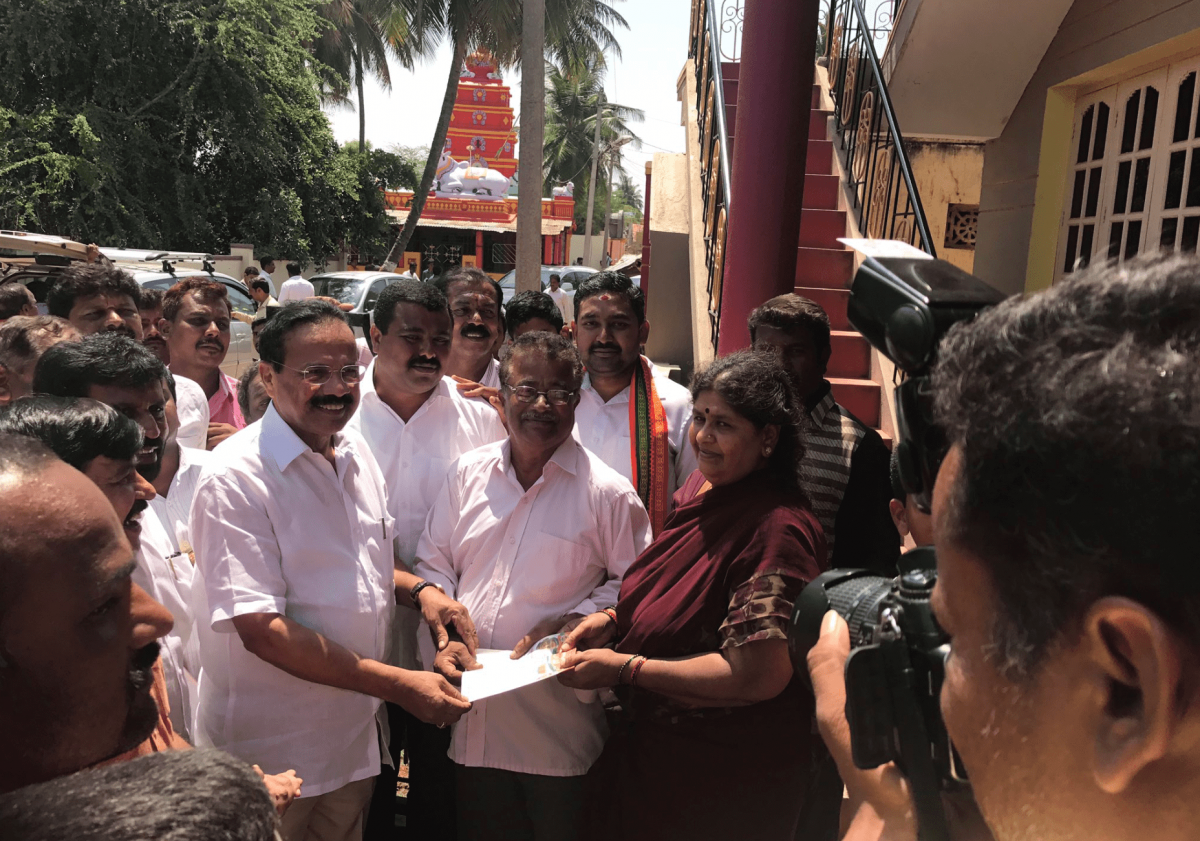BJP leaders campaign for V. Srinivas Prasad at Karnataka's Nanjangud. Photo: Twitter/@DVSadanandGowda