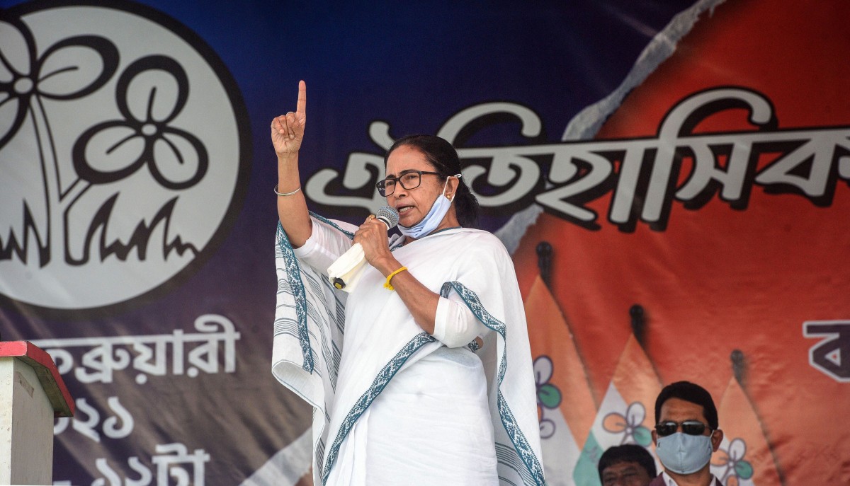 West Bengal Chief Minister Mamata Banerjee addresses a public rally at Kalna, in Burdwan district, Tuesday, Feb. 9, 2021. Photo: PTI
