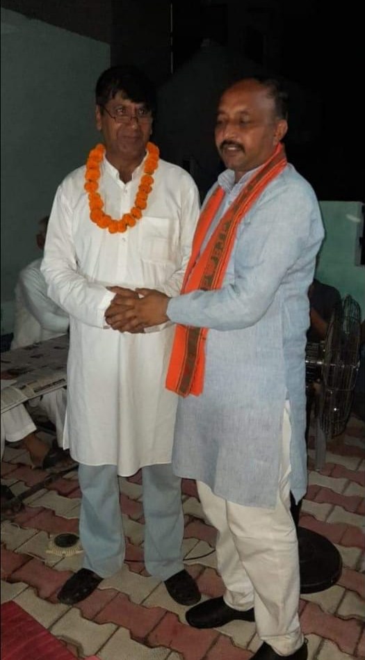 Pradhan Mahesh Chandra (left) and BJP leader Harendra Chaudhry 'Rinku' (right).