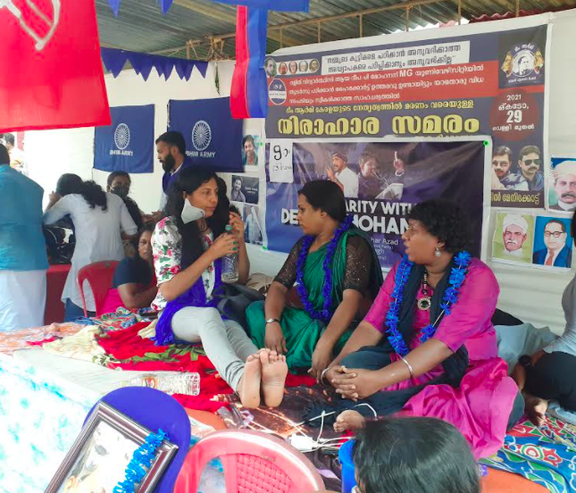 On Saturday, groups of students and some political parties visited the protest venue to express solidarity with Mohanan.