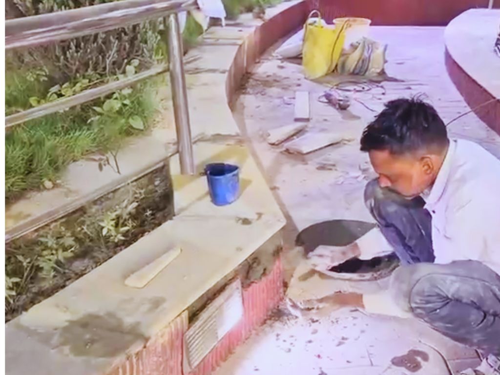 A screengrab from a video showing repairs being done on the railing at Samvidhan Chowk in Nagpur.