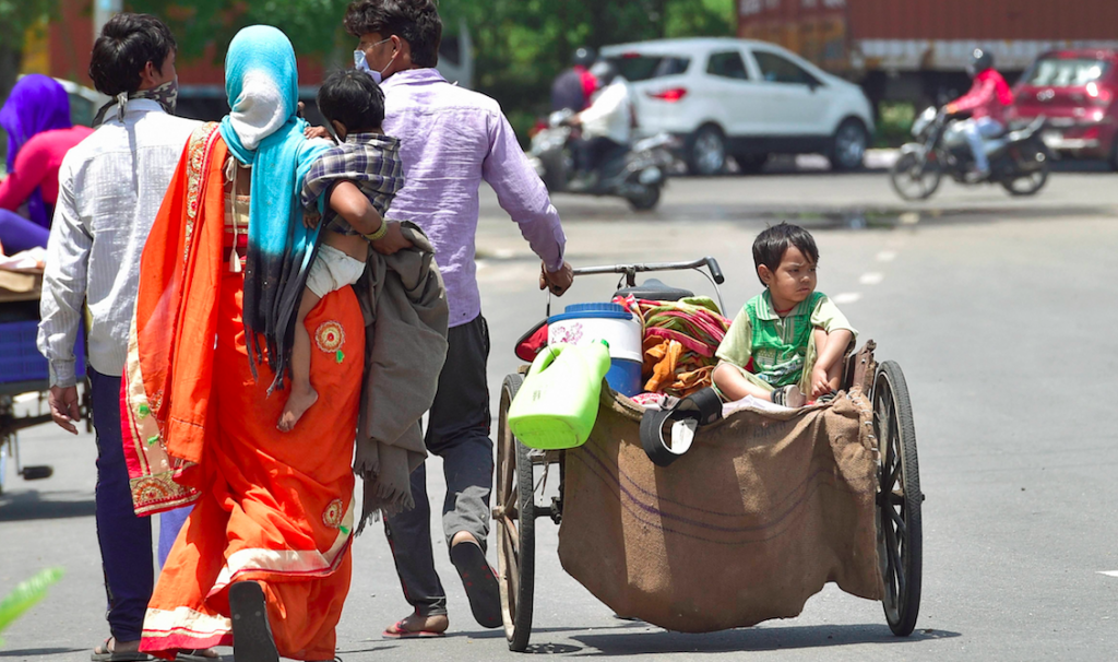Representative image of a migrant family walking through a New Delhi road. Photo: PTI