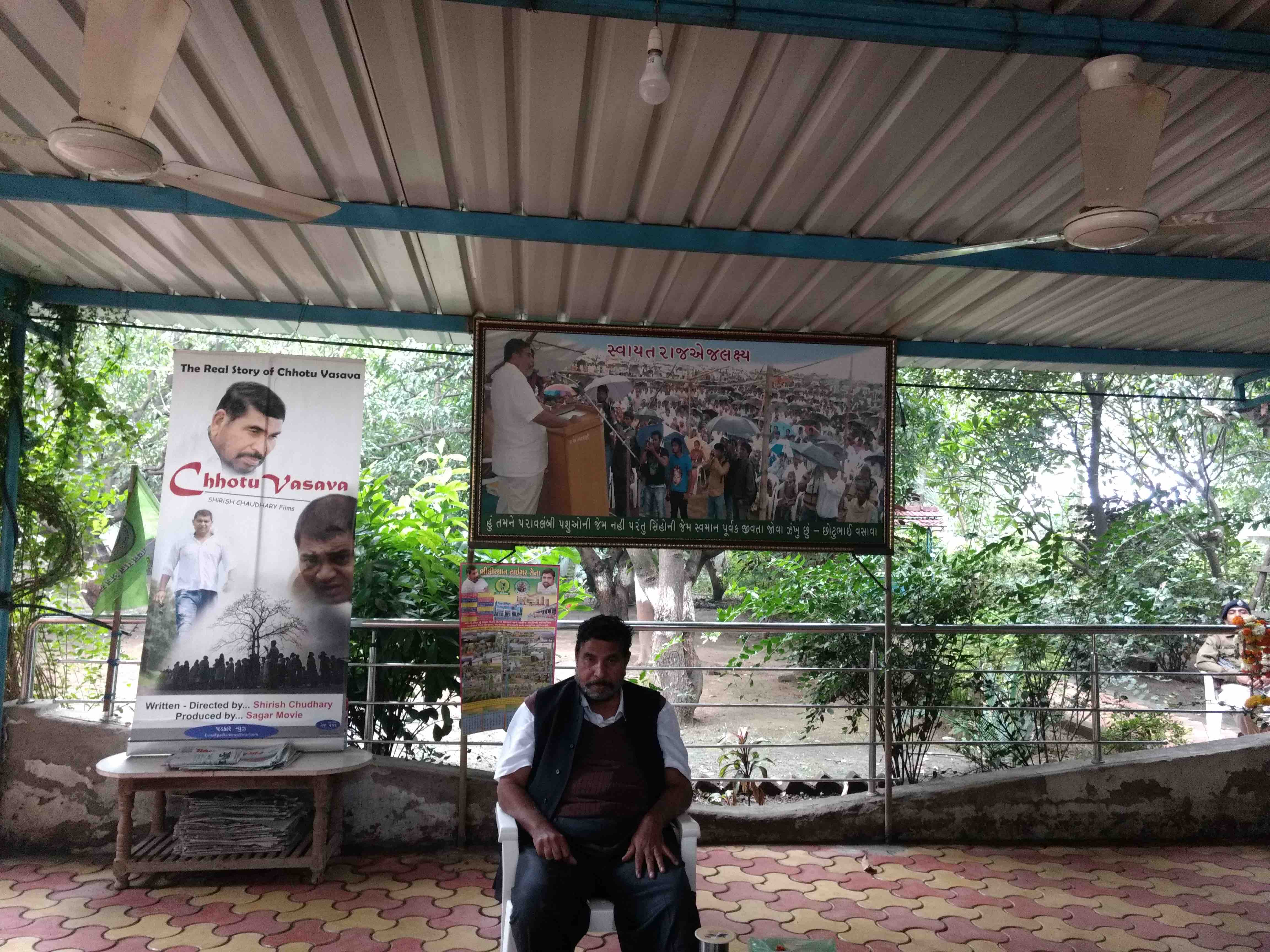 We are planning to launch a movement for the Bhilistan land to fight for our land rights across the country. Apart from this, this movie will be launched [points towards a poster behind the chair he is sitting on]. It’s a movie that shows my work of all these years. Play the music [tells one of his workers].