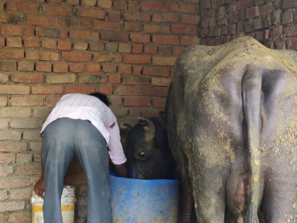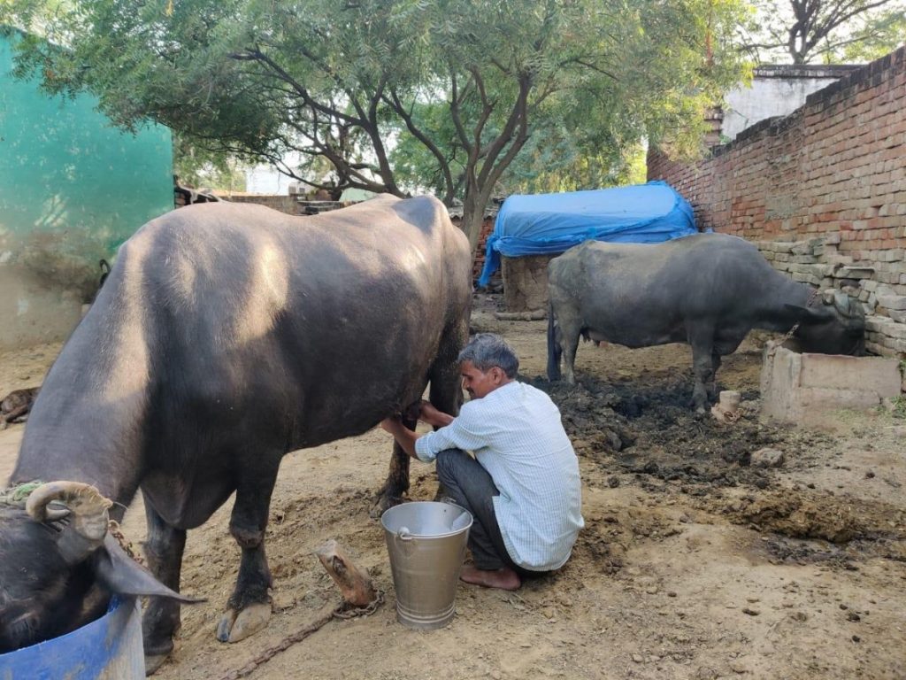 Santosh Kumar milks his cow. Photo: Ismat Ara