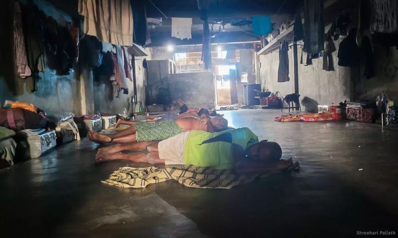 Akul Dandapani Nahak, a 54-year-old former powerloom operator from Ganjam who runs a mess on the third floor, sat on his foldable cot that was pushed against the pale blue-painted wall. Sacks of rice foreground the portraits of various Hindu gods on the wall, while a table fan desperately circulated musty air.