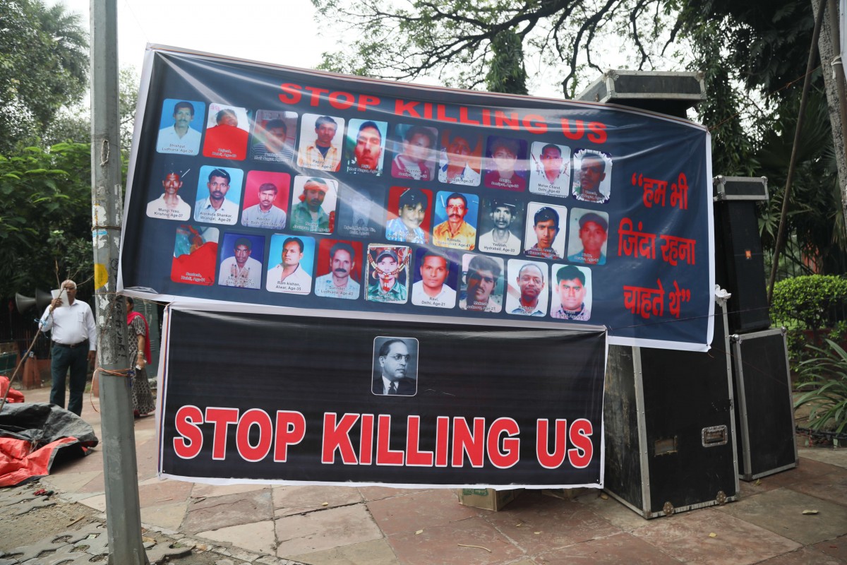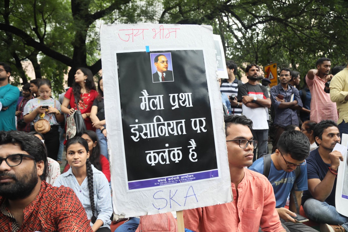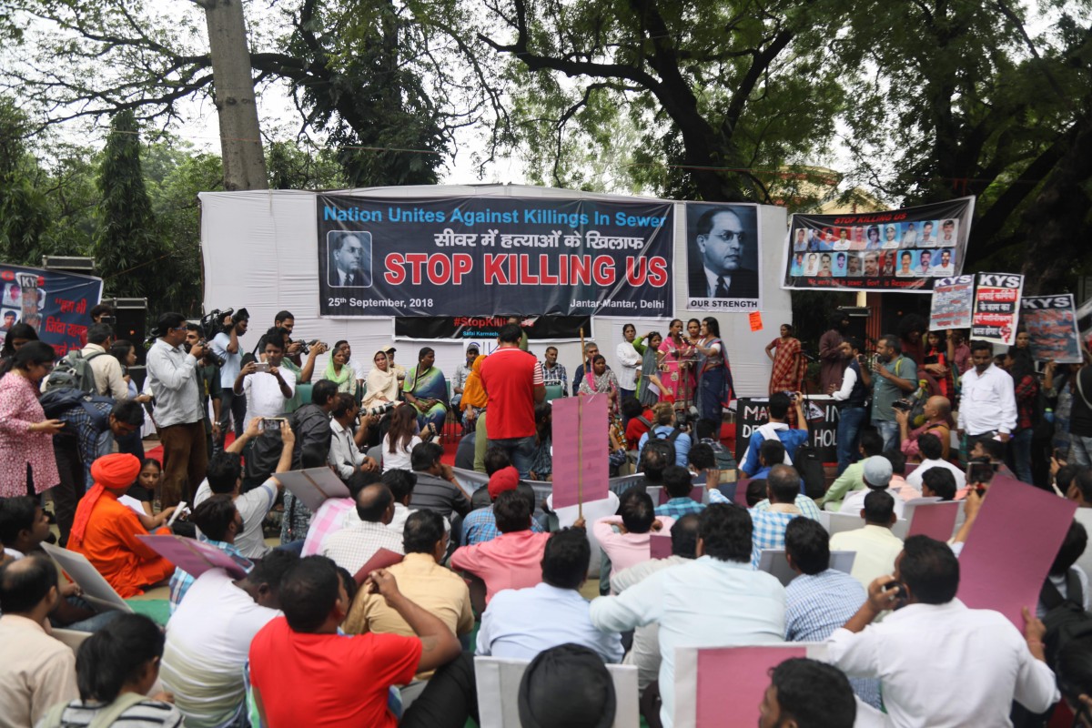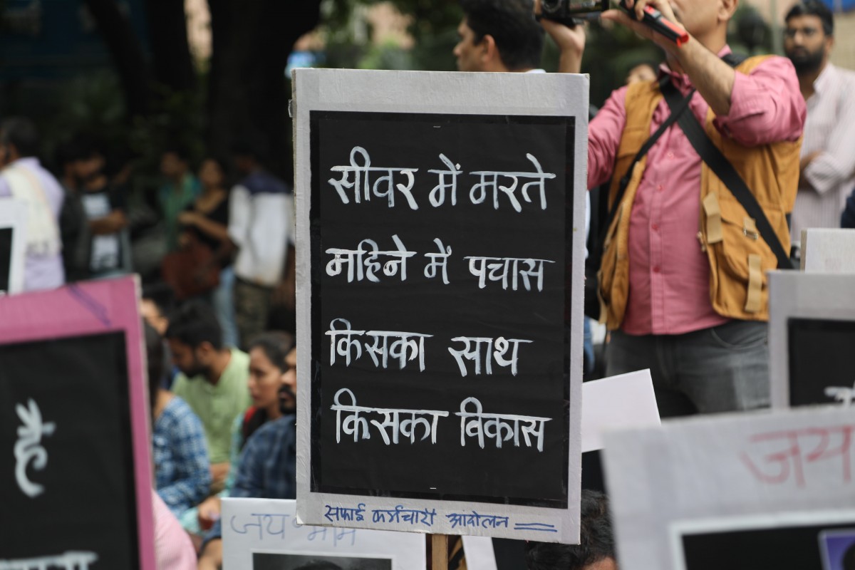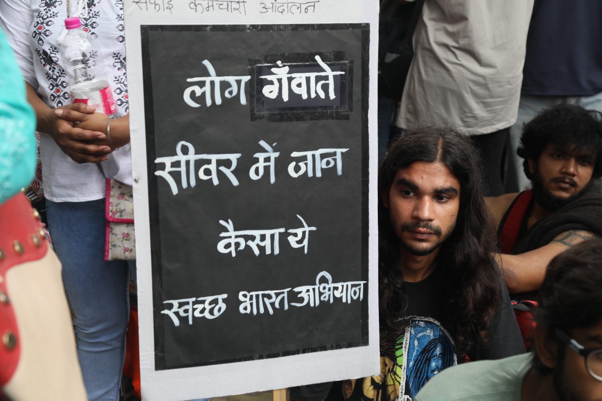 “There can’t be more orphans because of this. There can’t be more children who lose their parents, more wives who lose their husbands, more sisters who lose their brothers. It has to stop,” Bezwada Wilson, convenor of the Safai Karamchari Andolan, said at protest. “Nowadays the government says so much about ‘Swachh Bharat’ – but it doesn’t have a word to say about manual scavengers. We are not asking them for money! We are asking for basic human rights.”