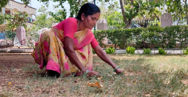 Abbaiah's wife Taradevi engaged in cleaning a government park. Photo: TNM