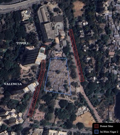 As Maqtoob Media reported soon after the demolition, “Others [in JBN] point fingers at Prakash Ambedkar, who allegedly diverted protesters from their homes. ‘While we were protesting inside the colony, Ambedkar called us out to protest outside. That’s when Hiranandani bouncers, along with the police, stormed into our houses and smashed our belongings,’ [local resident Ram Janam] Chauhan added.”