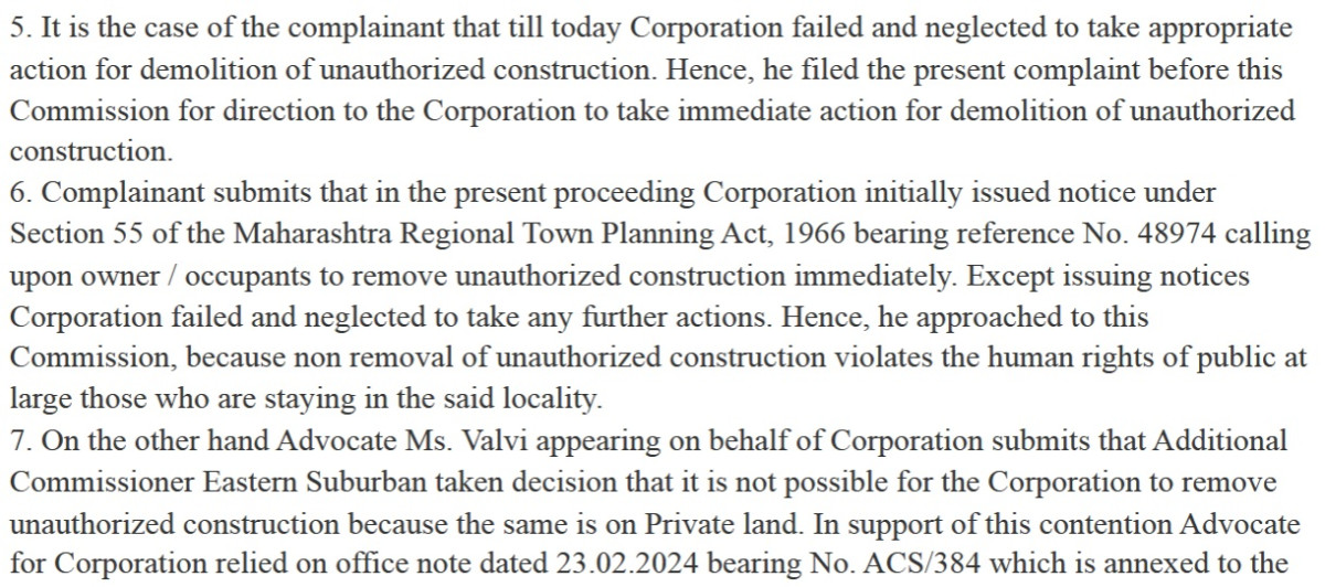 Namit Keni, son of Bharatiya Janata Party ex-corporator Ranjana Keni, played an instrumental role in this by submitting a complaint on November 8, 2023, to the Maharashtra State Human Rights Commission (SHRC), urging the demolition of JBN on the ground that their presence violated the “human rights” of those who lived in the buildings of the upmarket Hiranandani Gardens. The SHRC even issued a demolition order that it later redacted during legal proceedings in the Bombay High Court.