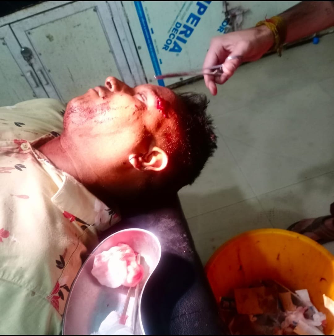 Injured Dev Raj, brother-in-law of Raj Kumari being treated at District Hospital Udhampur. Photo: Bivek Mathur