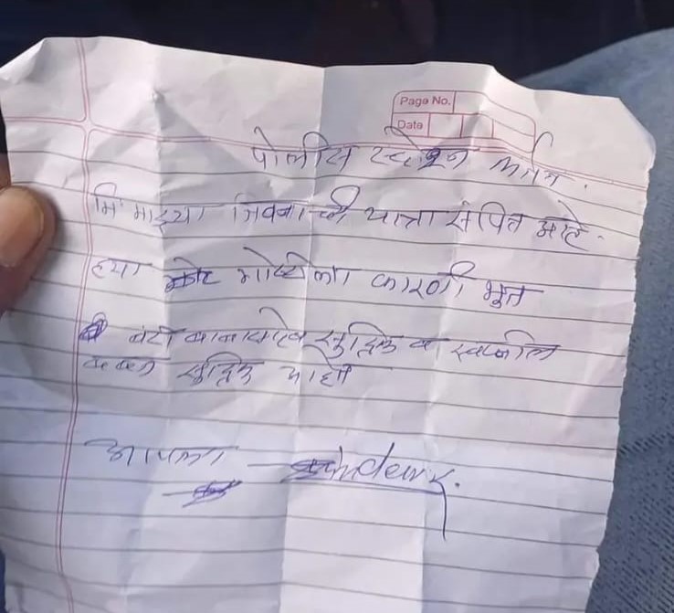 Vitthal's suicide note, where he names the accused in the case. Photo provided by author.