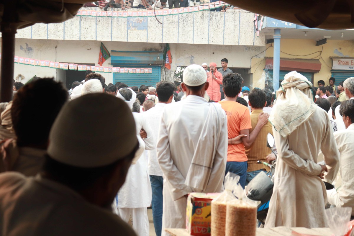 This is something he is unable to do in his own campaign. Over the past 30 years the BJP has managed the paradoxical feat of appealing to an overarching Hindu identity while catering to the fragmentary demand of jaati politics. This remains true of the Balakanth campaign who has, in part, been picked to contest from Tijara because he is a Yadav, who form the third largest community here.