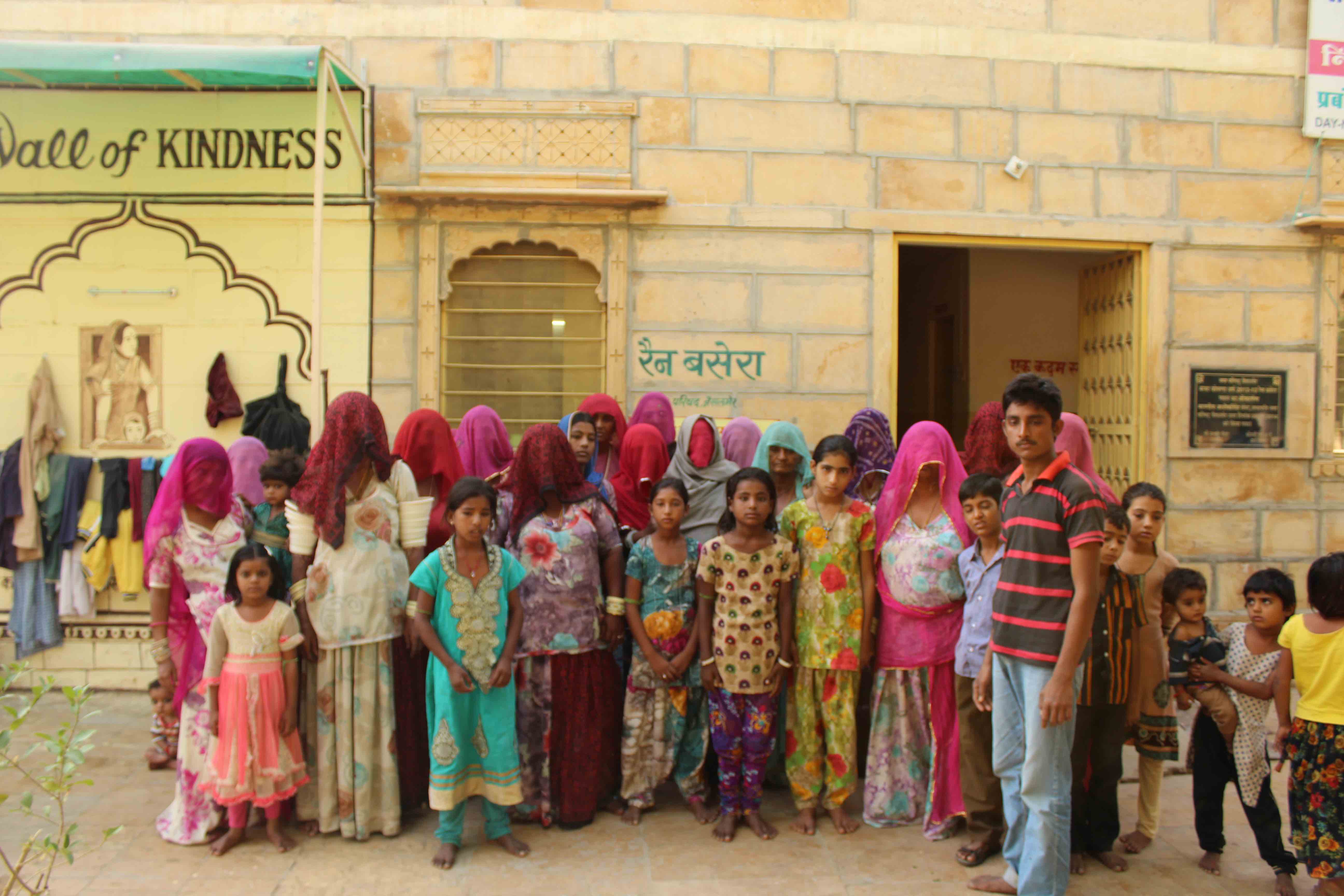 Women and children outside the rain-basera in Jaisalmer. Credit: The Wire/Shruti Jain