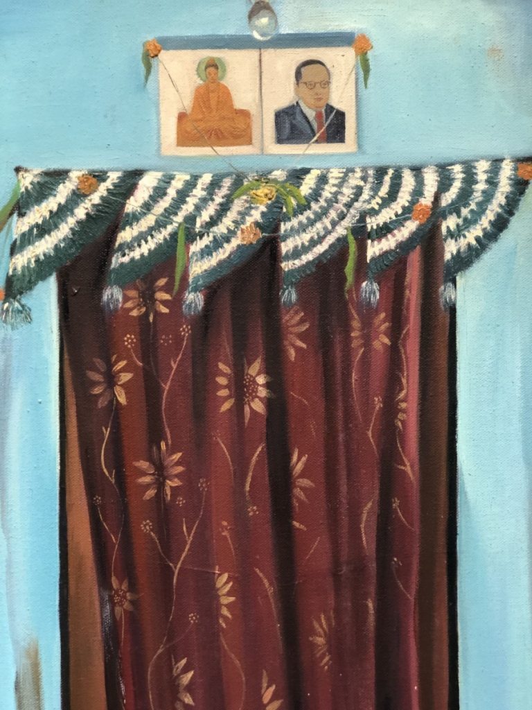 Vikrant Bhise's 'HOME WALL, 2023, oil on canvas. Photo: S Anand, from the exhibition Sense and Sensibilities: A Reflective Realisation.