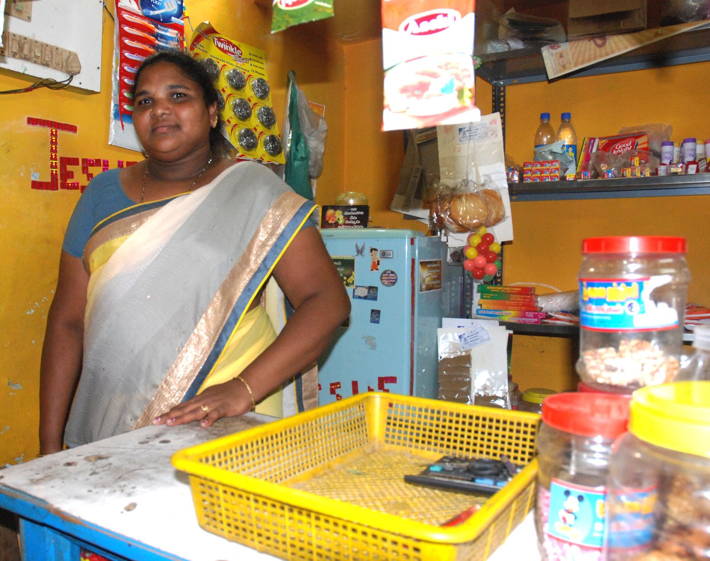 That strength enabled Nagamma to leave her housekeeping job, and take a loan of Rs. 20,000 and, with help from her father and SKA, an all-India organisation. She then set up a shop for items of daily use in front of her house in Indira Nagar.