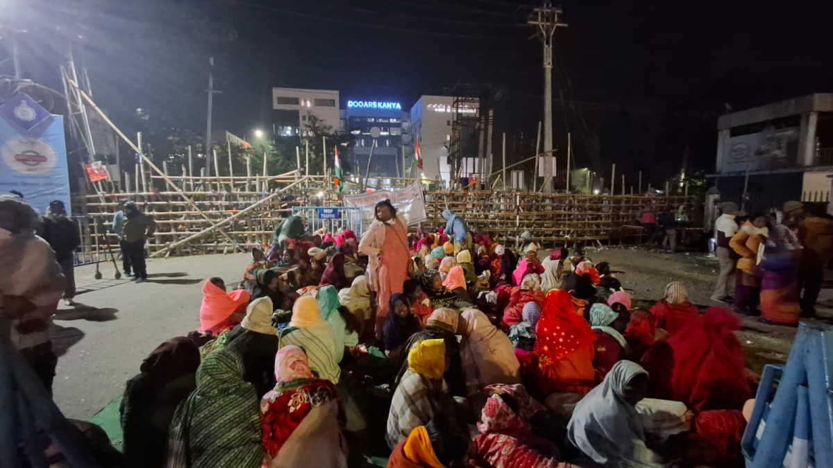Tea garden workers sit on a dharna in Alipurduar in January 2025. Photo: By arrangement