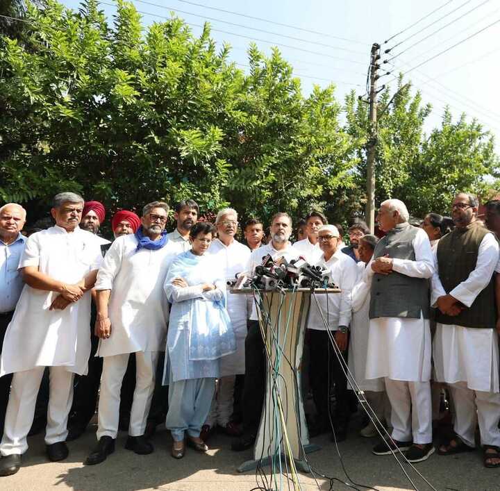 He was accompanied by Haryana Congress leaders including Bhupinder Singh Hooda, Kumari Selja and Rao Narender Singh.