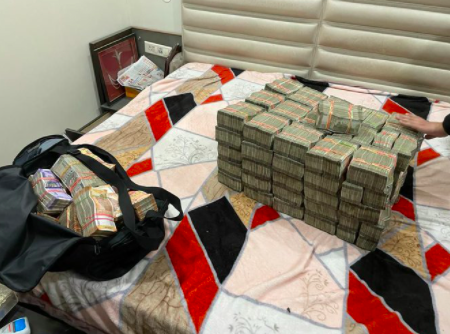 Visuals of cash allegedly recovered from Bhupinder Singh's house, tweeted by BJP members. Photo: Twitter/@gssjodhpur