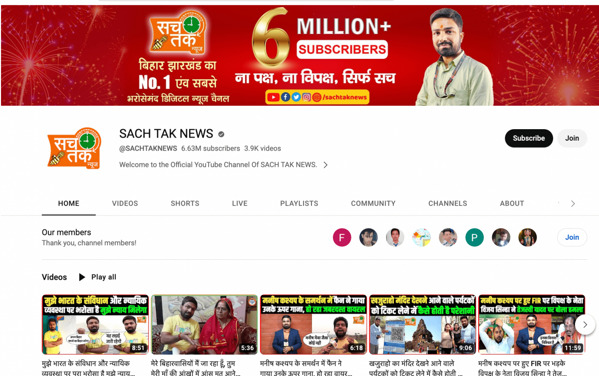 When Kashyap designated himself as a citizen journalist, it took him four years to establish himself. Now, however, he and his channel Sach Tak have a total of one crore followers across all social media platforms. The combined following on his six YouTube channels is close to seven million and he has over 40 lakh followers on Facebook. This is apart from the dozens of fan pages in his name.