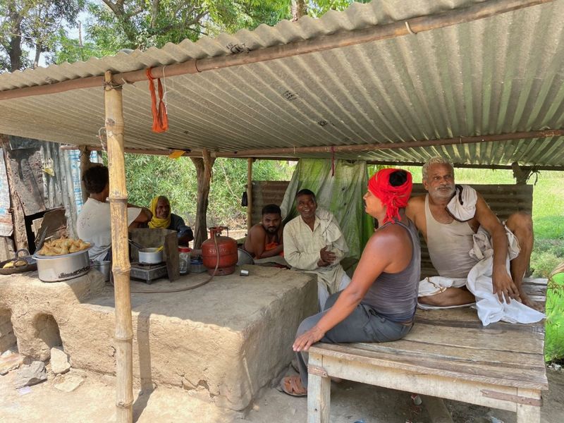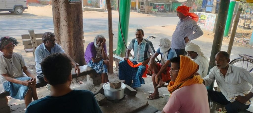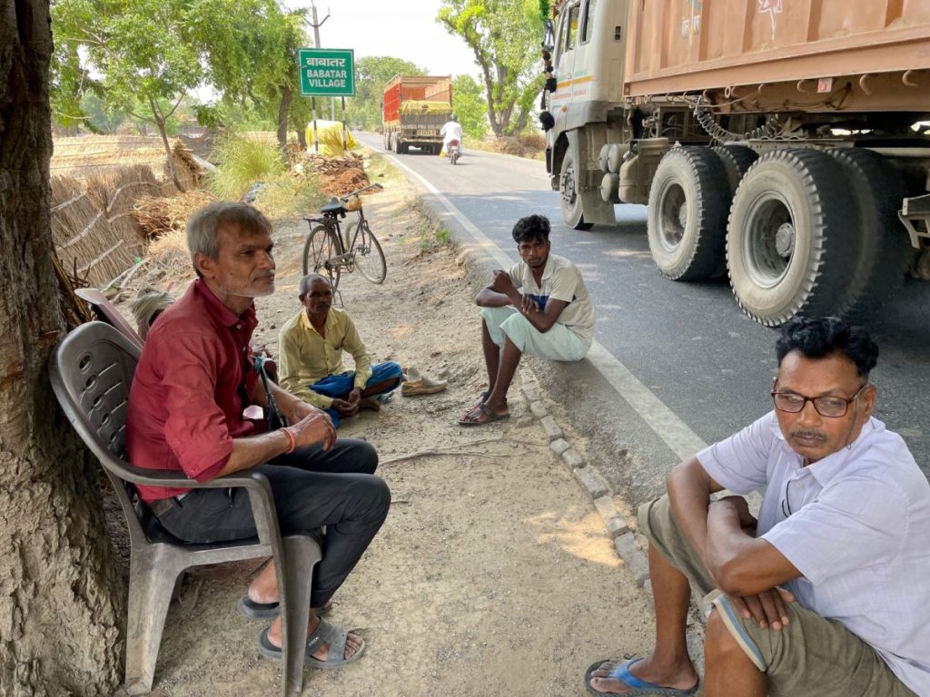 Jai Prakash Ram and people sitting with him in Ujiarpur. Photo: Manoj Singh